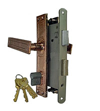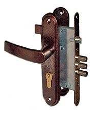 ![]() Замок с ручкой (нижний) "АПЕКС" с задвижкой и броненакладкой |